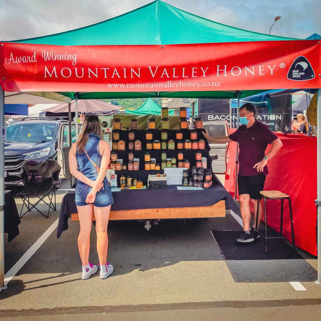 The Nelson stallholders all bring their own personalities to the markets, making it a wonderful experience for shoppers. From handcrafted candles to delicious cheese or knitted hats, the market is stocked full of quality goods. We love taking the opportunity to tell people all about our honey — they are often surprised to find that we live just down the road.