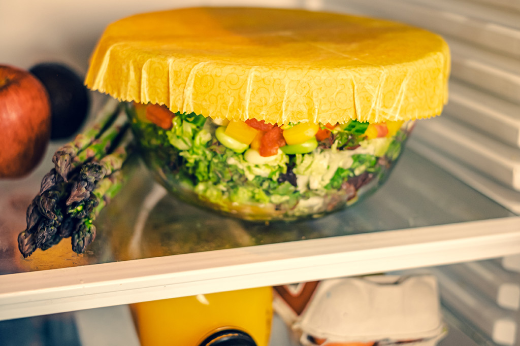 Our beeswax wraps are great in the fridge, converting glass or ceramic bowls of all shapes and sizes into useful storage containers. With a little bit of thought, dishes already in the cupboard can be used to create practical stacking solutions. How wonderful to avoid buying more Tupperware! And eliminating cling film is great too since research suggests it is not just bad for the environment, but for our health as well.